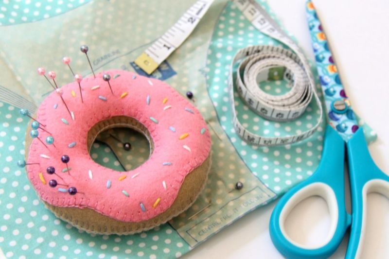Мека възглавничка, изработена от цветни парчета плътен плат за разпределяне на вашето ръкописно оборудване. Това изделие от филц се изработва от предварително изрязани сегменти (за предпочитане от цветен филц), които се зашиват заедно, за да образуват кръг.