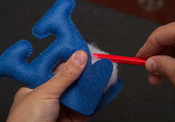 Елементите се сглобяват и зашиват по ръба с външен бод, за което се използват дебели цветни конци; в края на работата писмото се напълва с пълнеж и се зашива изцяло.