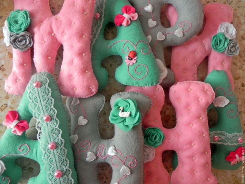 Обемните букви не са трудни за изработване, като за целта трябва да нарисувате буквата върху лист филц и да изрежете две еднакви заготовки, дублиращи втората.