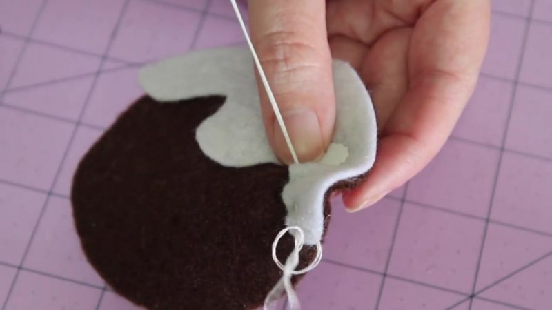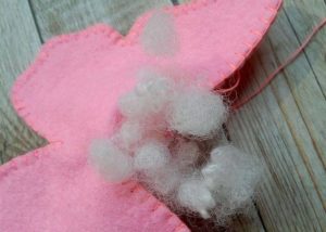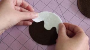Това парче се залепва върху картонен кръг и се пълни с вълна или синтетичен памук, преди да се залепи последното парче.