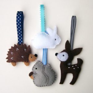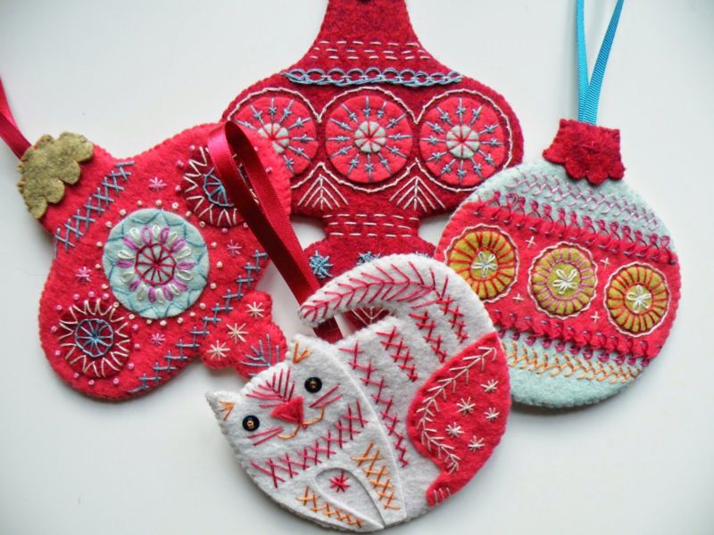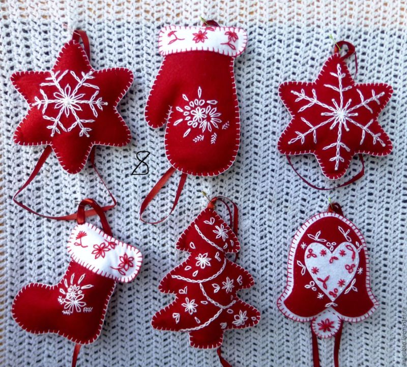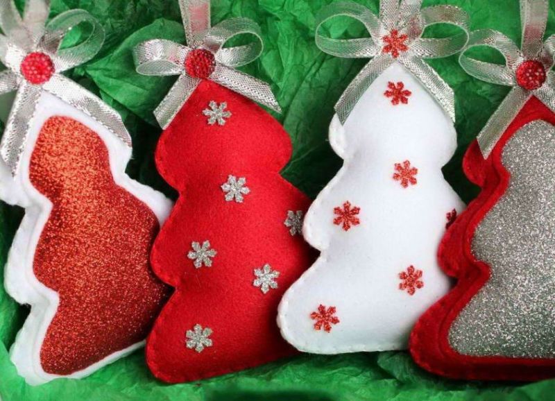 При изработването на сувенири от филц най-важното е да изберете интересна идея, като например ръкавици за прибори за хранене, коледни елхи от филц, украсени с мъниста, които лесно се оформят като гирлянди.