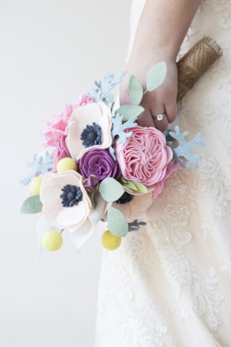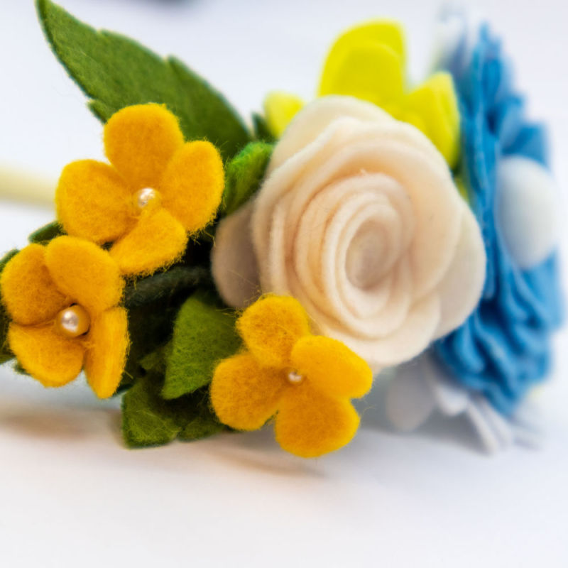 Красивите ръчно изработени изделия от филц се използват за украса на интериора и за целта можете да използвате букети от цветя.