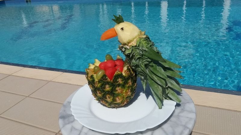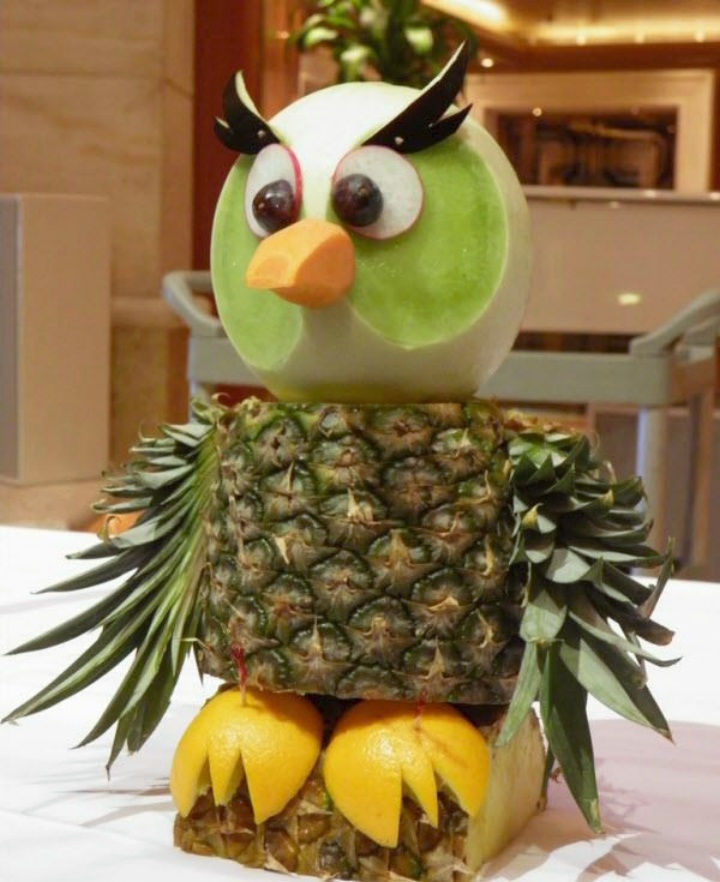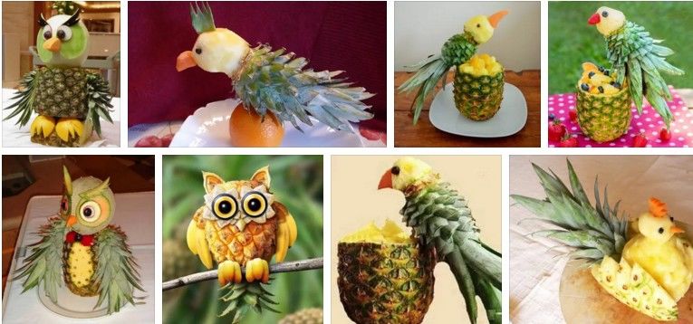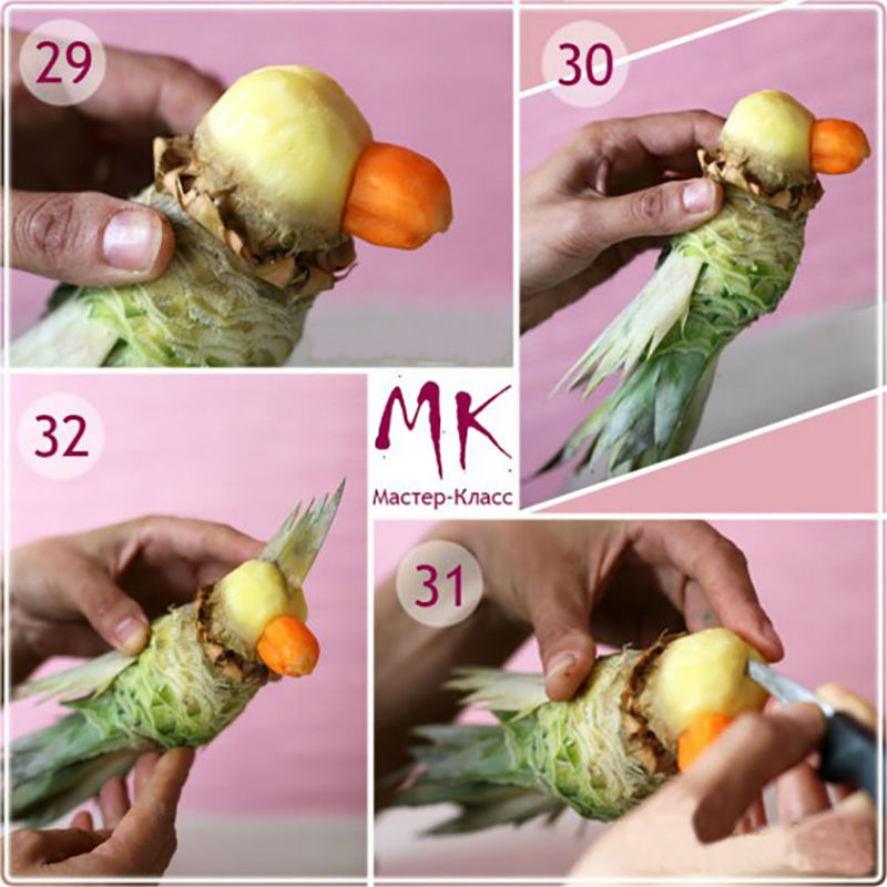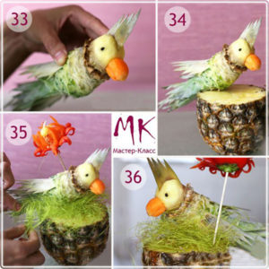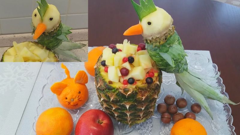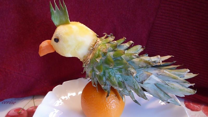 Друг оригинален пример за тропически плод е композиция на папагал от ананас.