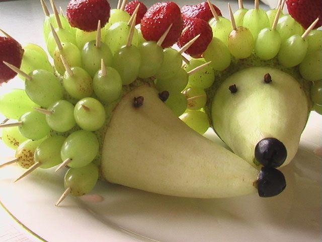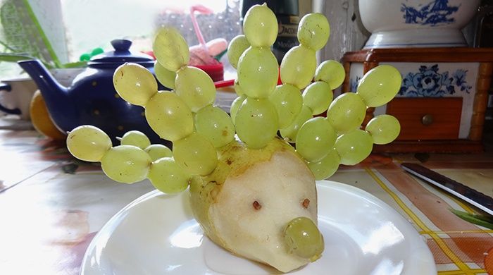 Тази композиция е по-подходяща за детски празник. Плодовият таралеж няма да отнеме много време, но резултатът ще зарадва малчугана.