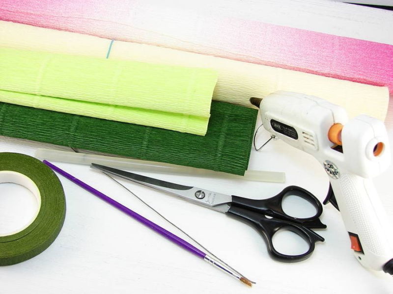 Освен хартия в различни цветове и нюанси, ще са ви необходими най-основни инструменти, прибори, шаблони и декоративни елементи.
