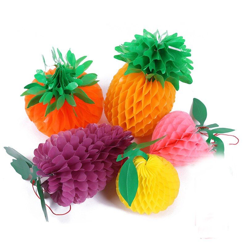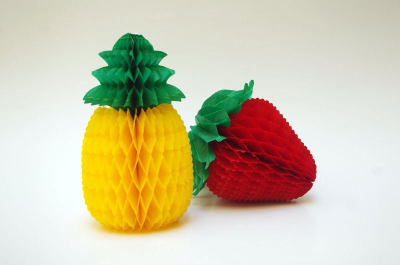 Декорацията включва триизмерни фигурки на плодове, зеленчуци и горски плодове.