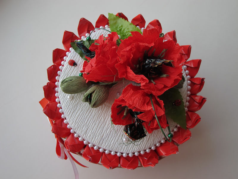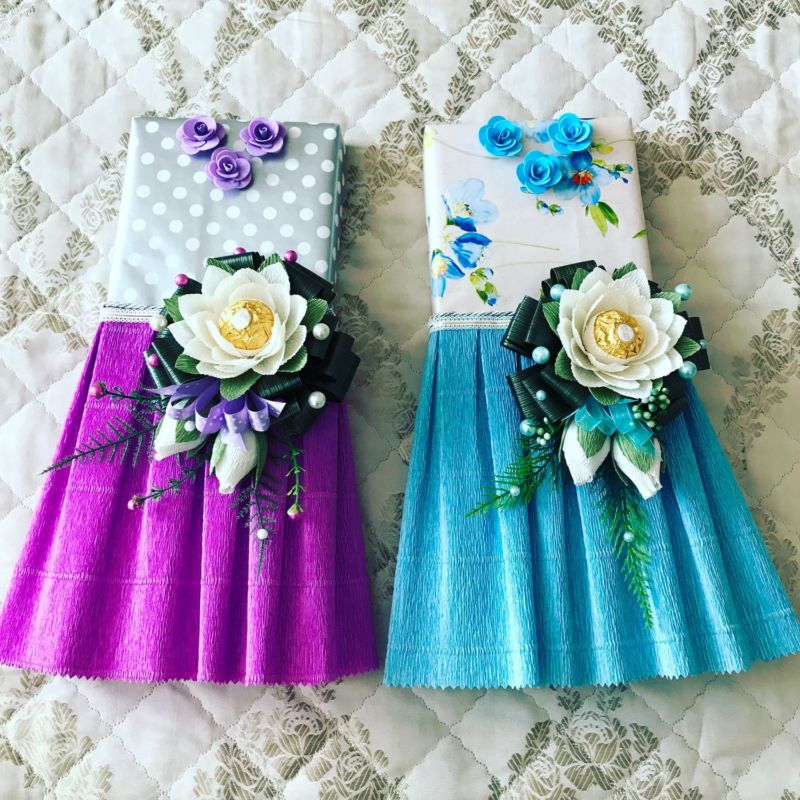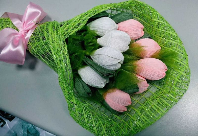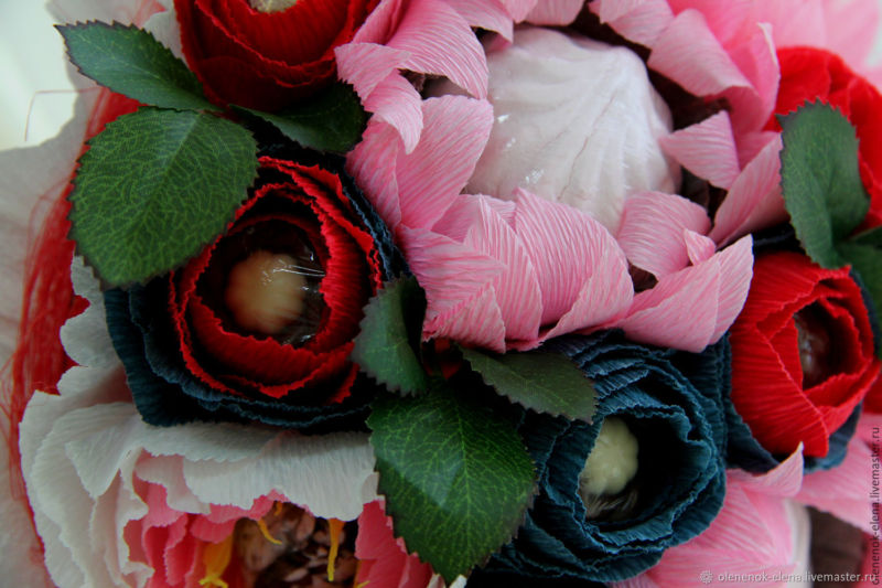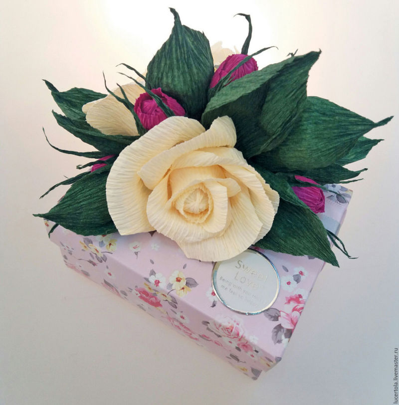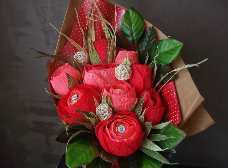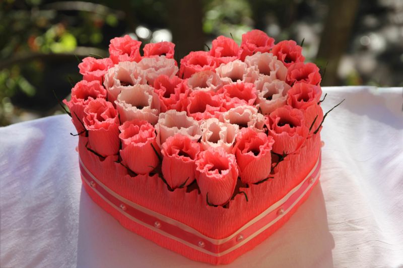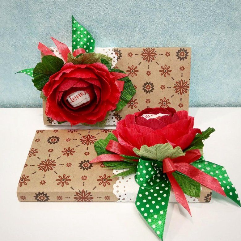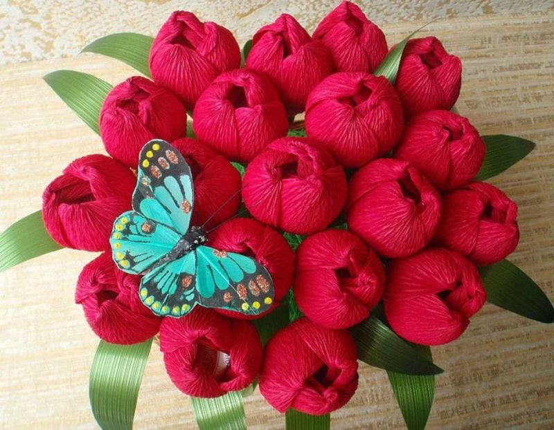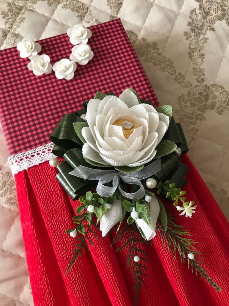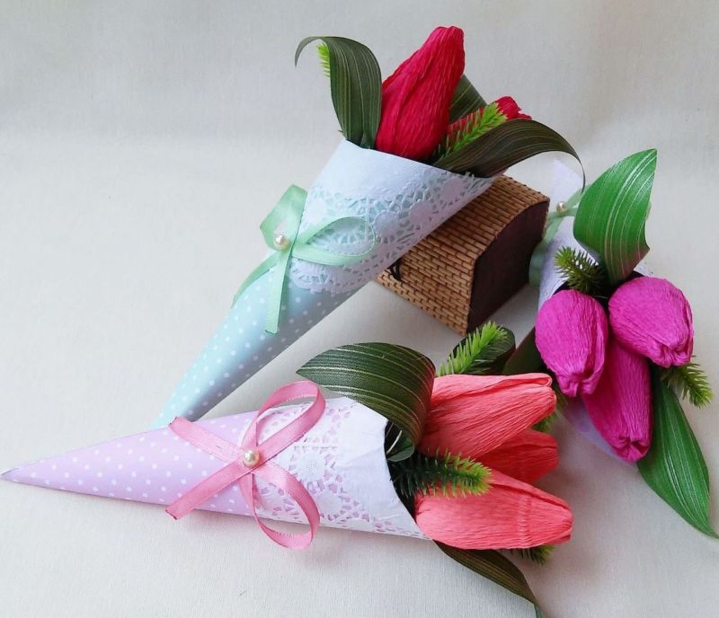 Гофрираната хартия се използва и за декоративни елементи върху опаковките. Това са цветя, бонбони, всякакви фигурки. Не пренебрегвайте представянето на подаръка, тъй като то е първото нещо, което привлича вниманието. Опаковката на подаръка, изработена собственоръчно, определено ще изненада любимия ви човек.