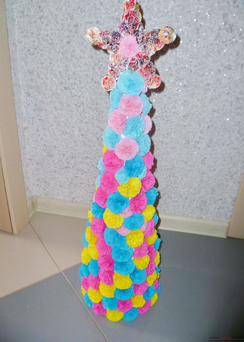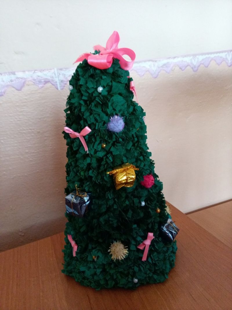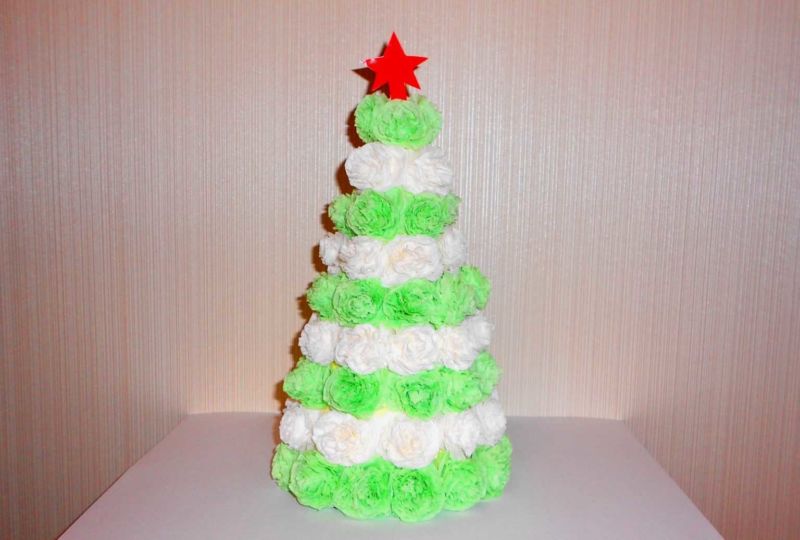 Първият вариант е коледна елха, изработена от хартиени листенца: