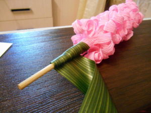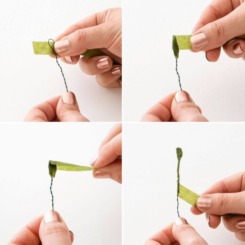 - Отгоре поставете парче тел или пръчка, увита в зелена хартия.