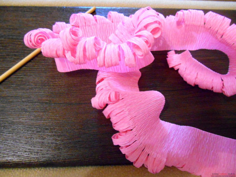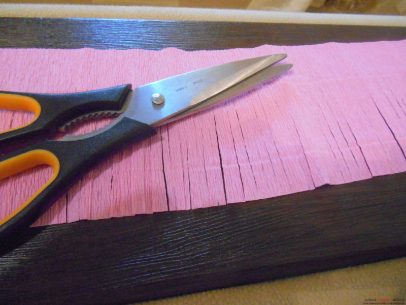 - Изрежете дълги ленти от хартия и ги нанижете една върху друга (направете вълнички).
