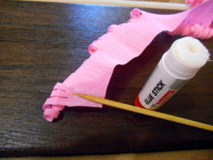 - залепете назъбения акордеон върху предварително изрязаната форма на писмо, така че ресните да са насочени нагоре;