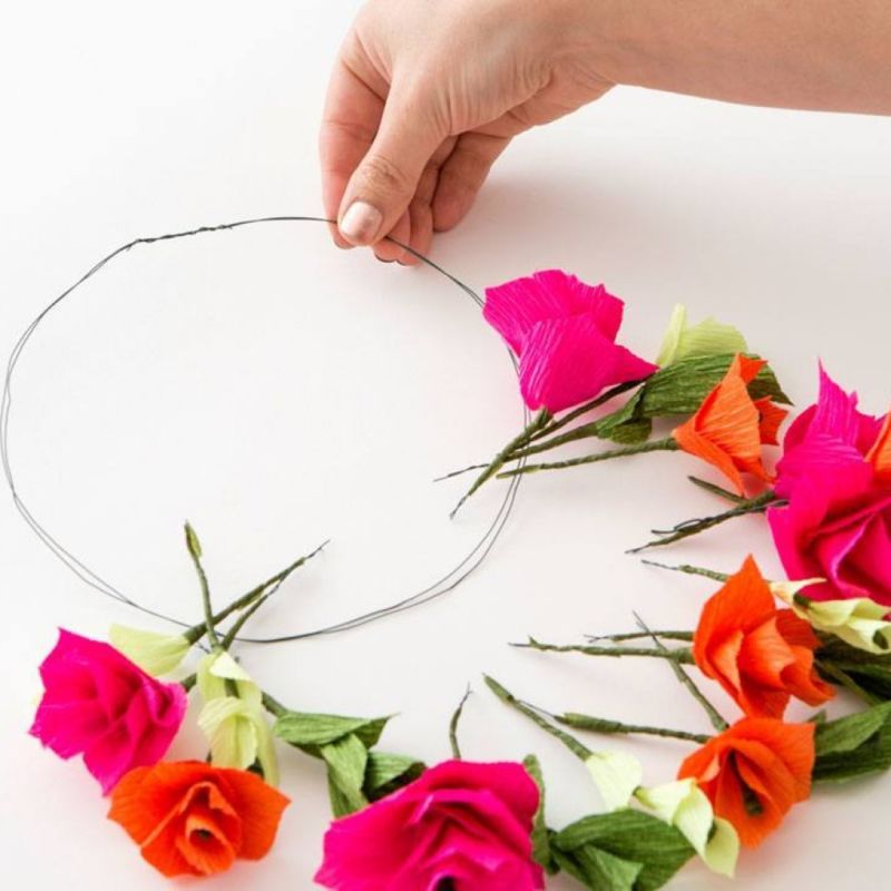 - Поставете рамката в парче велпапе, усучете я в точката на бъдещото стъбло и завържете с конец.