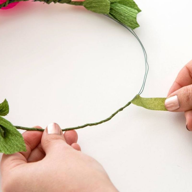 За великденския венец пръстенът е украсен със зелена велпапе.
