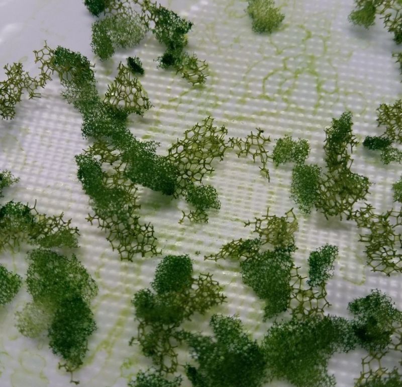 Елементите "мъх" изсъхват бързо, защото по-голямата част от боята е изстискана. След изсушаване частите на гъбата не се деформират и запазват първоначалната си структура.