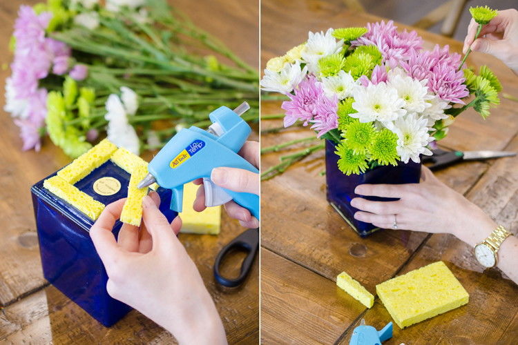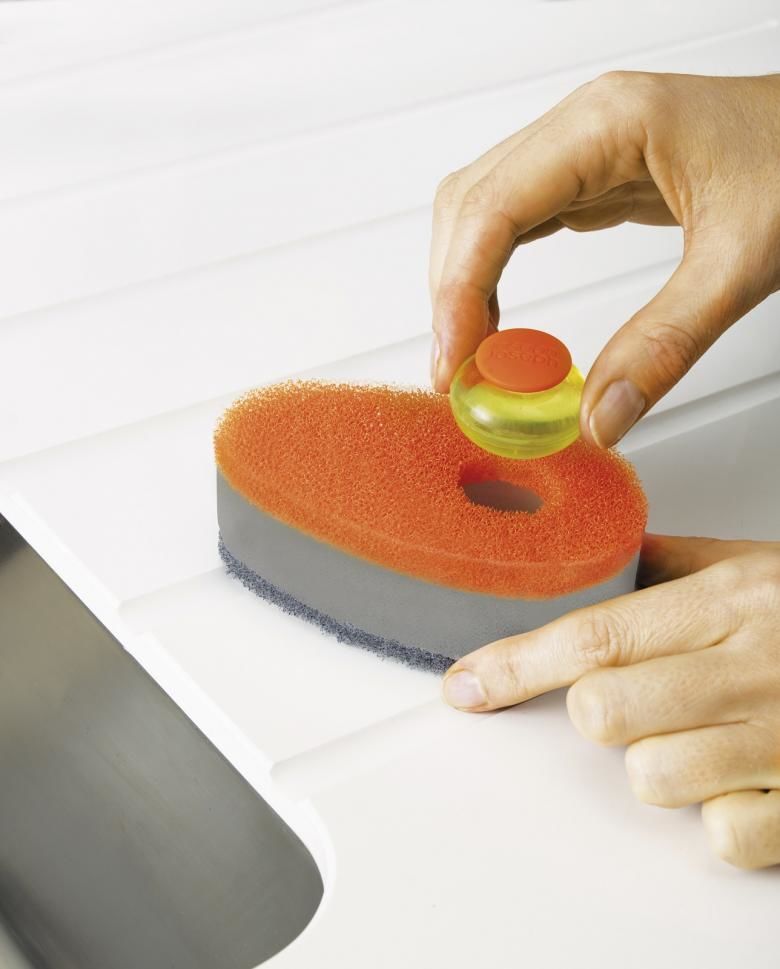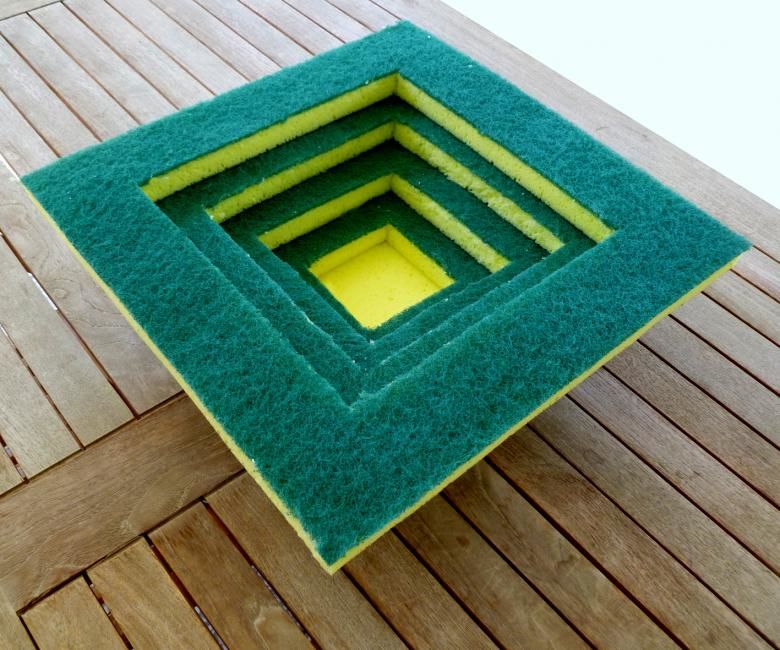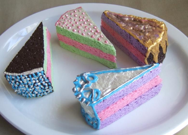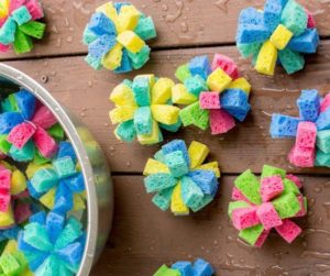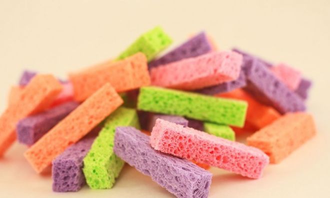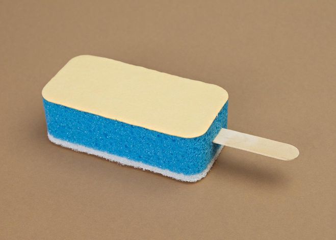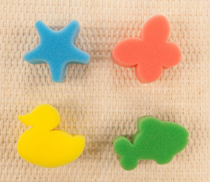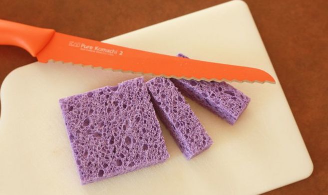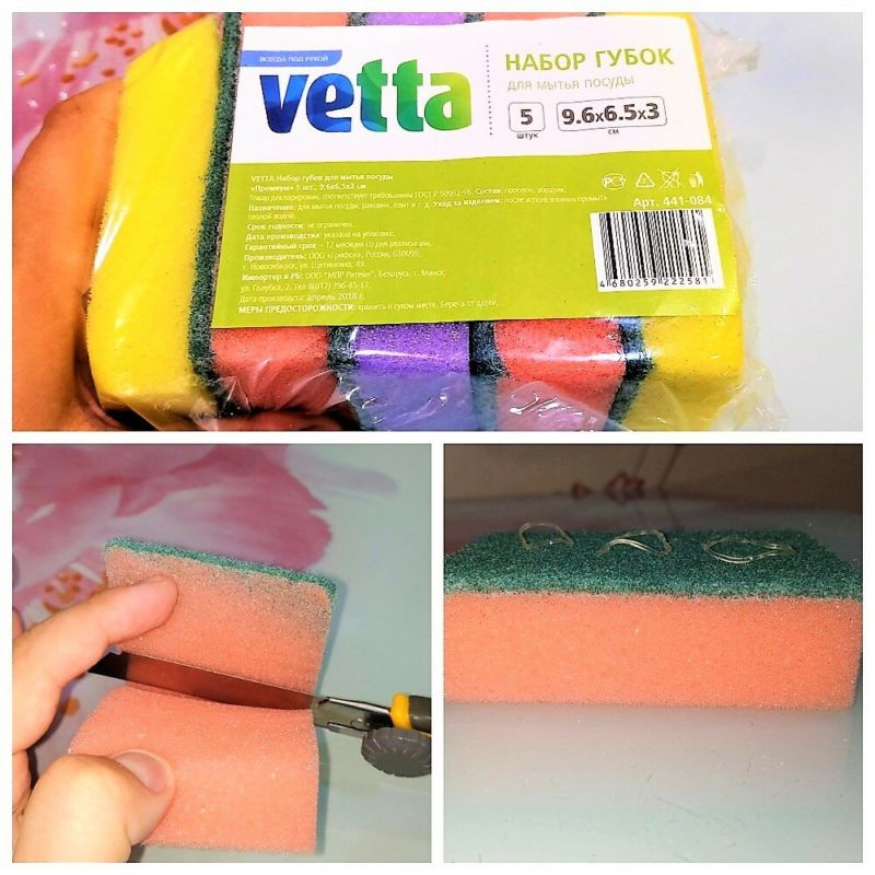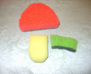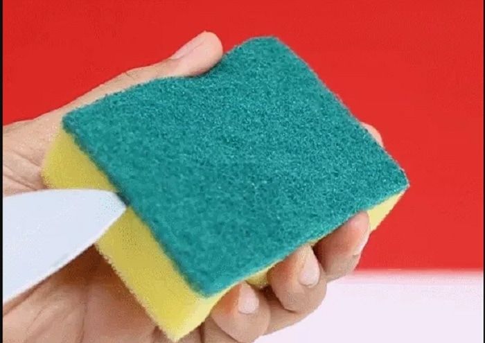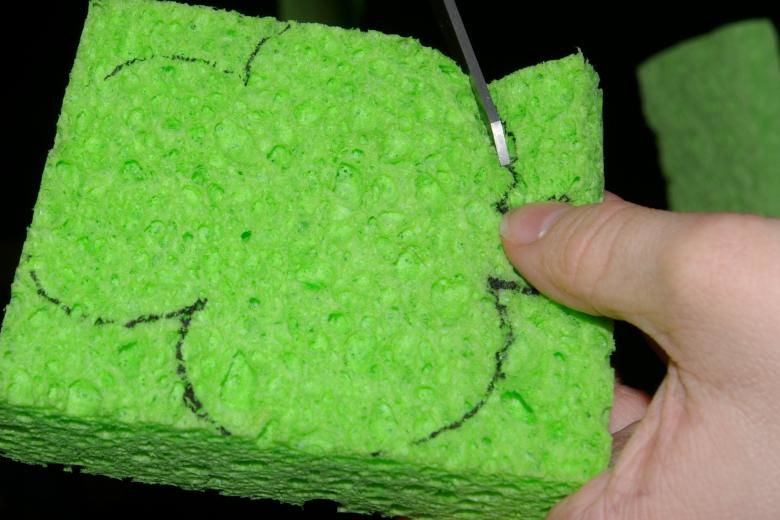 Кухненската гъба може да се използва за изработване на печати и пломби. Изрежете форма, потопете я в купа с гваш и нанесете върху продукта. Например, за боядисване на яйца за Великден.