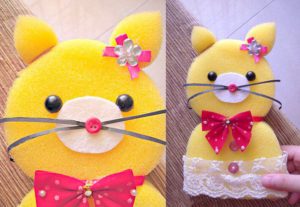 - Ножица, ножче или скалпел - с тяхна помощ е удобно да се придадат необходимите контури на играчката, а скалпелът или ножчето се използват за отделяне на твърдата основа на гъбата от пяната.