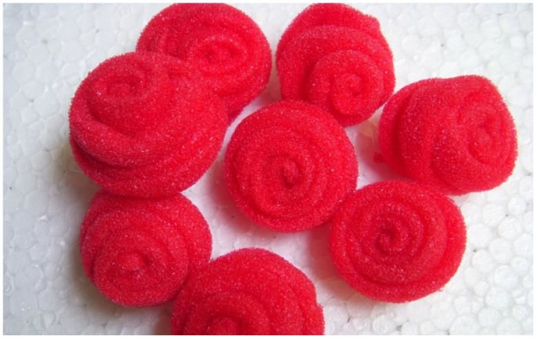 Чудесна идея за занаяти с кухненска гъба са поставки за игли, изработени от самите деца. Работата е съвсем проста, тъй като не е необходимо да боядисвате частите. Поставките за игли ще украсят интериора на стаята и ще бъдат полезни.