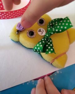 - Прикрепете ластик в средата на гъбата, за да създадете тялото на животното.