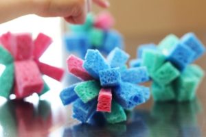 Развивайте талантите на детето си по различни начини. Една от тях е да създадете занаяти с гъби за миене на съдове, за да създадете любими изображения. По време на дейността децата развиват ясни представи за нещата и предметите около тях и желаят да доведат нещата до край.