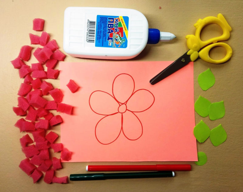 За да направите оригинален занаят с гъба, трябва да купите кутия с цветни продукти от пенопласт. Това ще бъде основният, но не и единственият материал за творческата работа.
