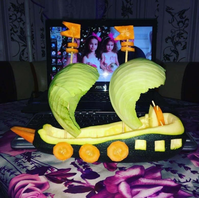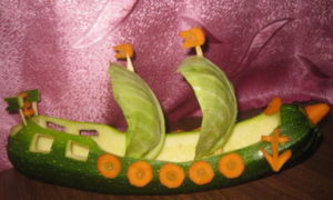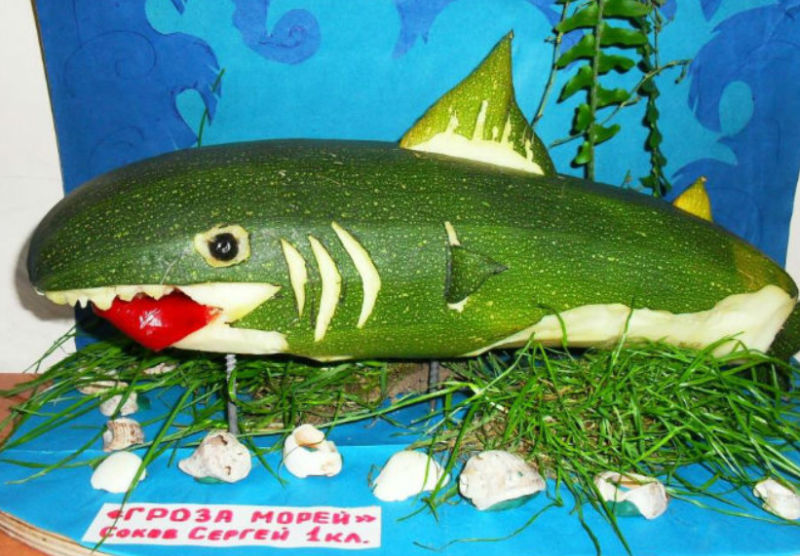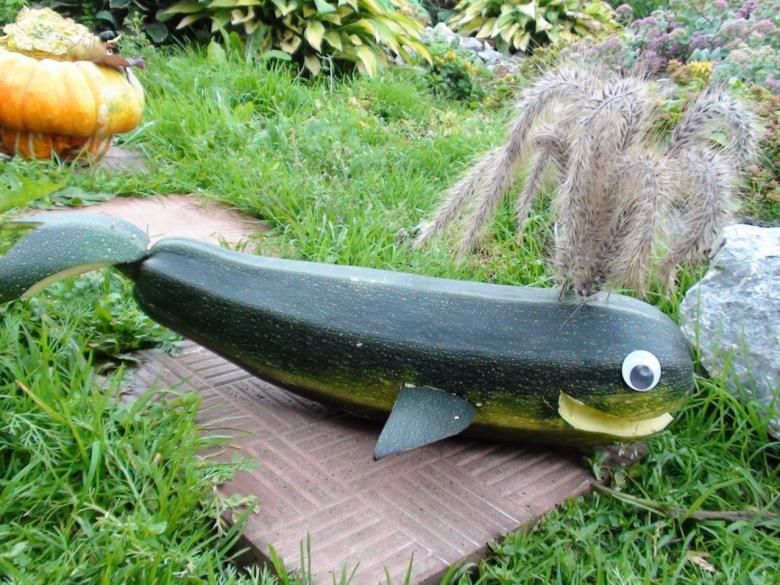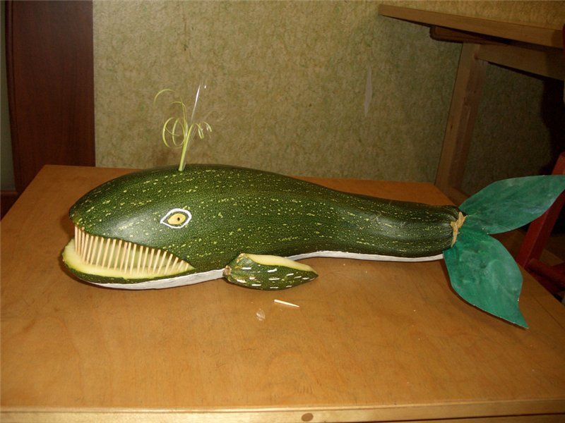 От извитата тиквичка може да се направи кит. Най-добре ще изглежда от тиквички. За да направите кит, имате нужда от: