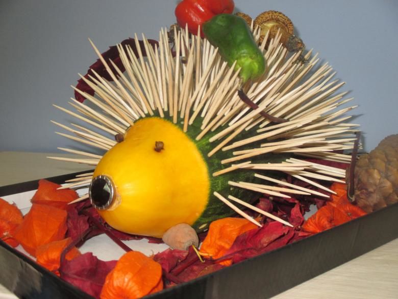 Една от най-лесните работилници от тиквички за детската градина на есенна тематика е да се направи таралеж. Иглите могат да бъдат направени от клечки за зъби, а ако се притеснявате, че детето ви може да се нарани, заменете ги със запалки. Материали: