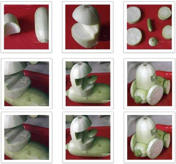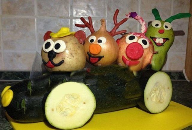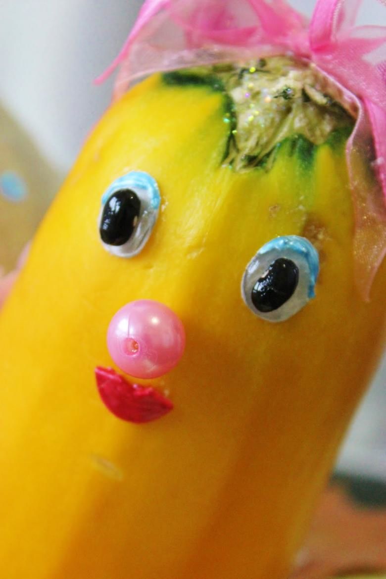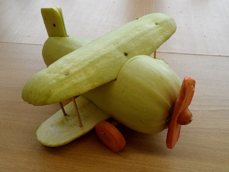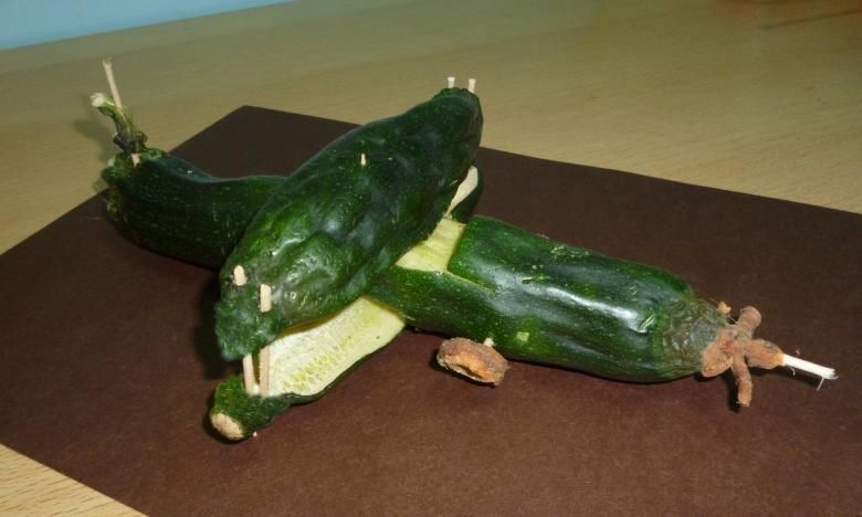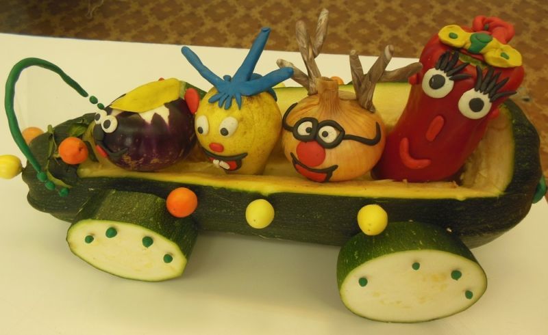 Поканете децата да помислят как изглеждат различните тиквички. Така например от прави зеленчуци могат да се изработят различни животни, превозни средства и вази.