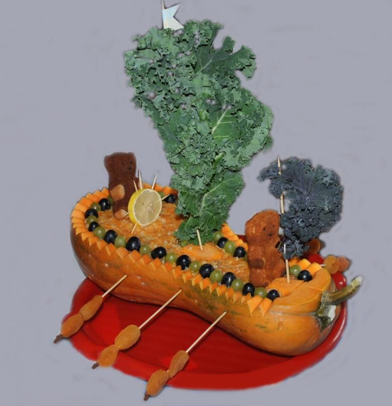 Извитите форми са по-подходящи за фигури като риби, акули, китове и лодки. Всички видове клонки, листа, плодове и други дарове на есента могат да допълнят идеално изработката на тиквички.