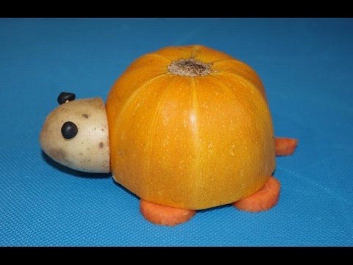 За направата на костенурка могат да се използват тиквичка и тиква или зеле. Имайте предвид, че тази кутия е доста голяма. Необходими са ви:
