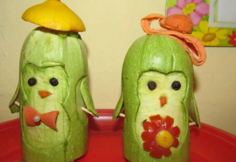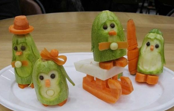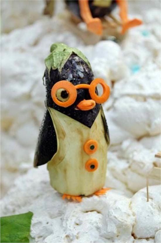 От моркови или други плодове и зеленчуци могат да се направят украшения или шапки за пингвини.