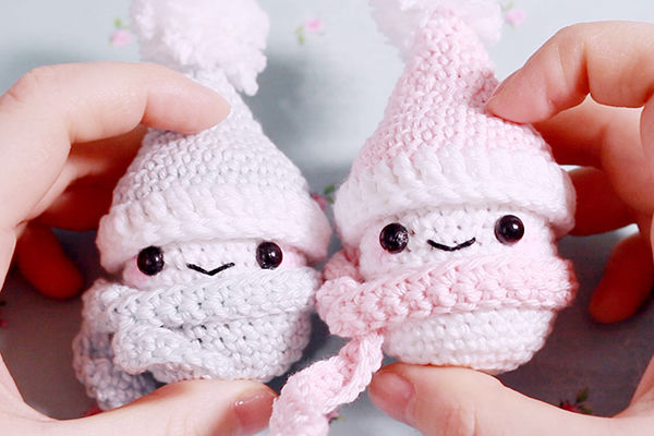 - Изрежете две триъгълни уши от розовия филц и ги прикрепете. Увийте тънка ивица от същия филц на руло и залепете петата.