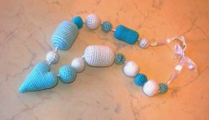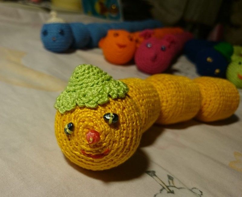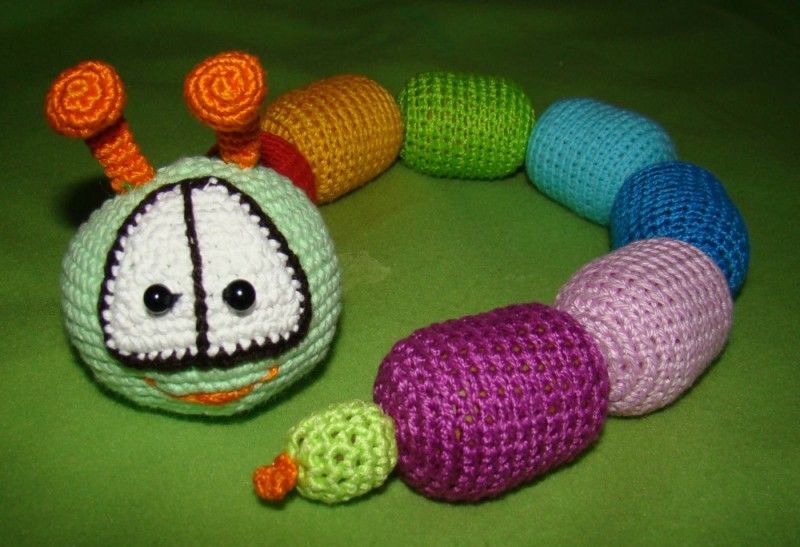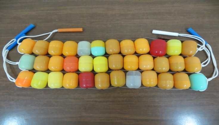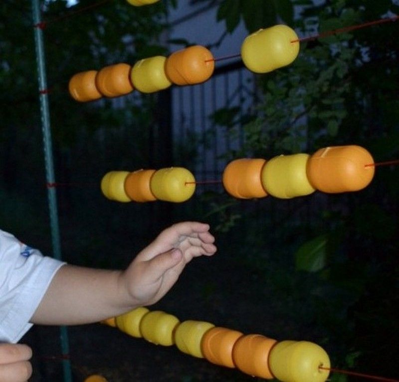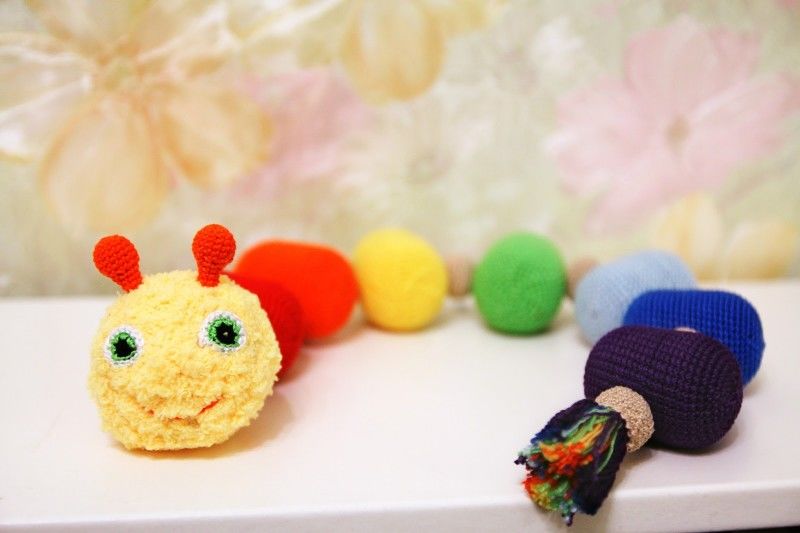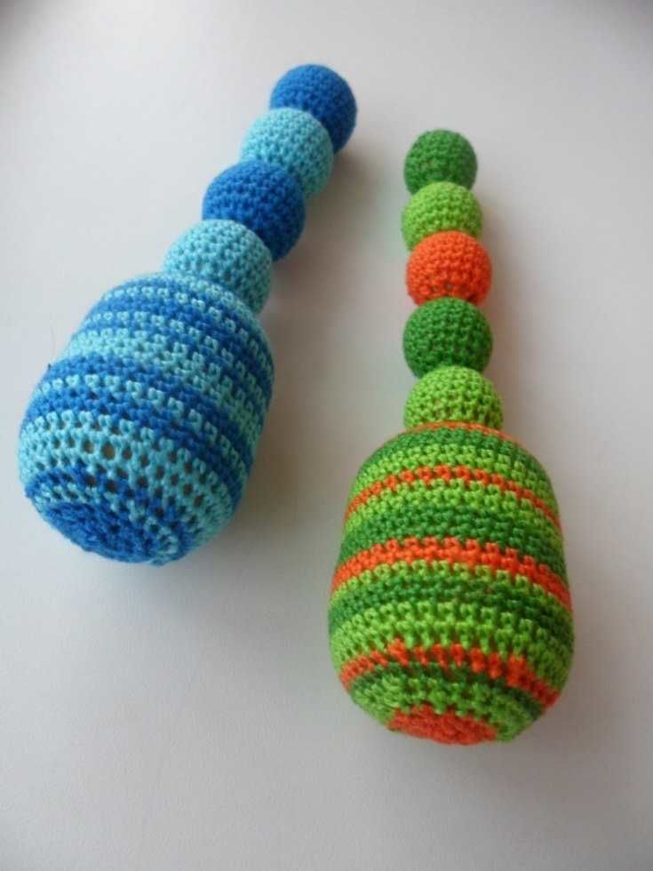 Майките или бабите, които могат да плетат, могат да изработят цветни дрънкалки от контейнер и бамбукова пръчка за суши. За целта контейнерът и пръчката трябва да бъдат завързани с цветни конци. От тези контейнери можете да направите подвижно легло.