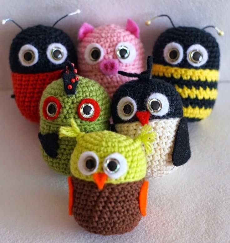 - Нарисувайте с флумастер или залепете очичките на играчките.