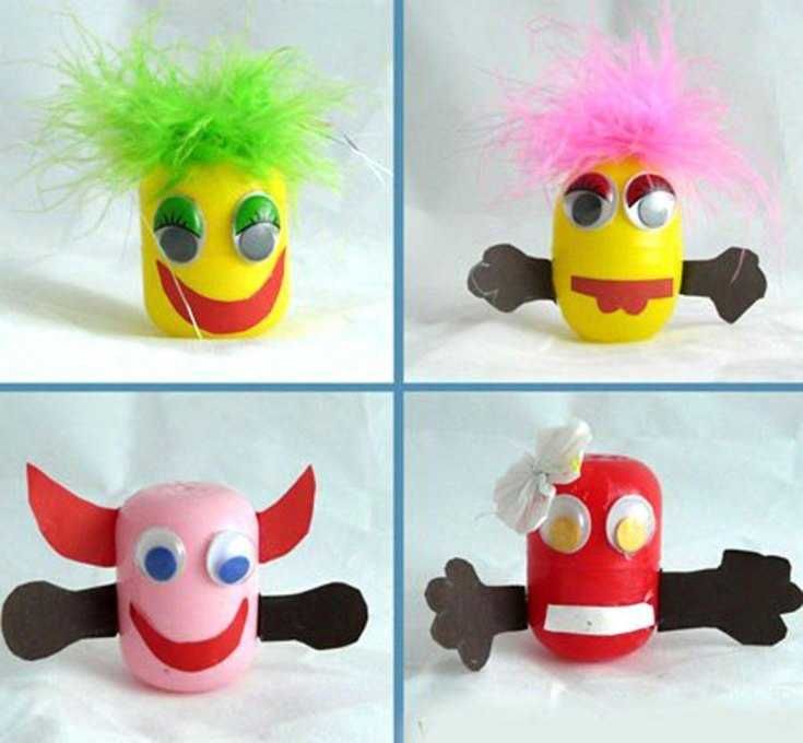 Направете прости манекени от контейнери, връв, пластмасови капачки от бутилки или дървени мъниста: