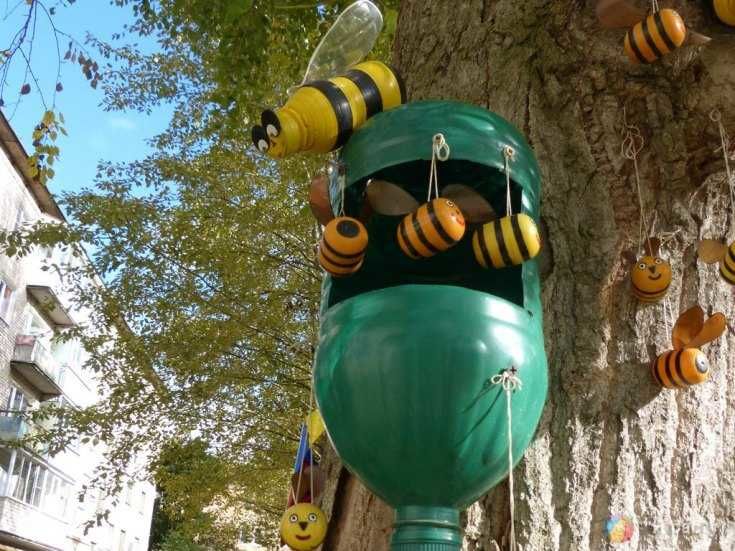За да направите пчела, пробийте контейнер откъм капака и дъното: