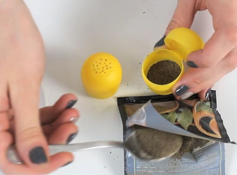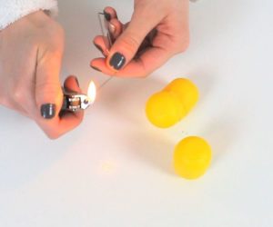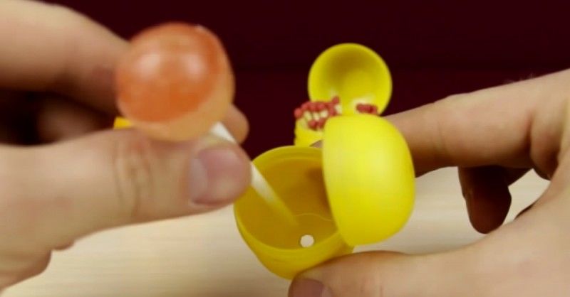 За да направите това, трябва да направите дупка в яйчената капсула, така че тя да пасва плътно на пръчките за бонбони. В такъв контейнер бонбоните ще бъдат запазени до следващия път, без риск от замърсяване.