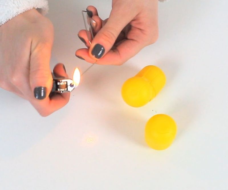 - Вкарайте клечка за зъби в дупките, така че от едната страна краят на клечката да е по-къс от другия.