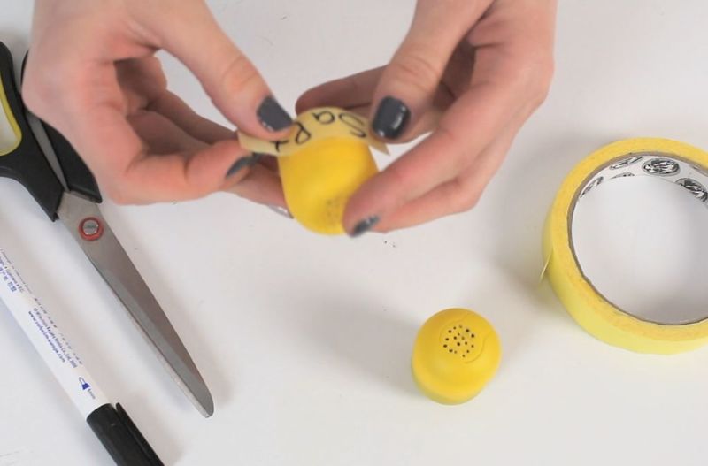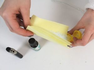 - Изрежете три тесни ленти от черно самозалепващо се тиксо или тиксо, равни на обиколката на капсулата.