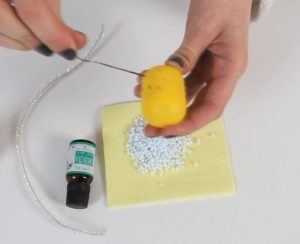 - Направете отвори в капсулата от двете страни, през които да прокарате панделка.