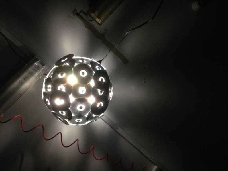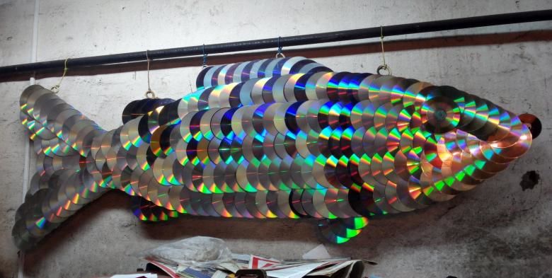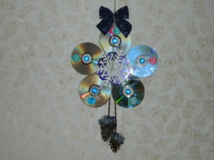 След като полилеят е готов, го закрепете със същата тел. Разбира се, можете да изрежете дисковете и да ги оформите в различни форми.