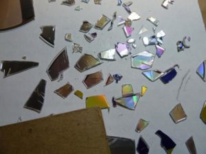 От съображения за безопасност всички операции с компактдискове (особено рязането на парчета) трябва да се извършват с предпазни очила. Острите ръбове на отрязаните парчета трябва да се изпилят, за да се избегне рискът от порязване.