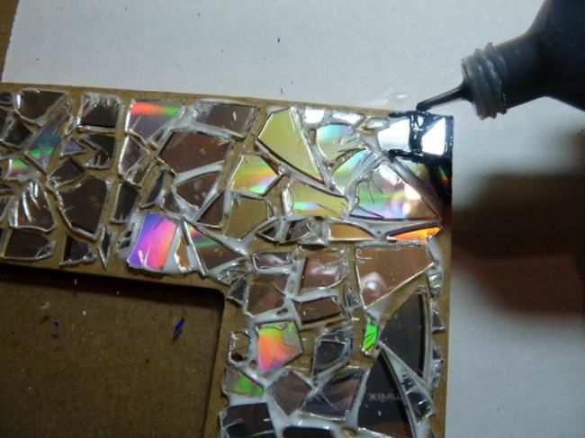 - Залепете парчетата върху рамката;