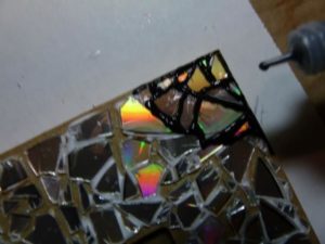 Първото нещо, което трябва да направите, е да пробиете необходимия брой отвори, така че дисковете да бъдат свързани с тел и да образуват рамка. Всички дупки се правят с бормашина, а дискът трябва да лежи върху дървена дъска. Бъдете внимателни, когато правите това, тъй като дисковете са крехки.