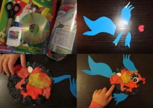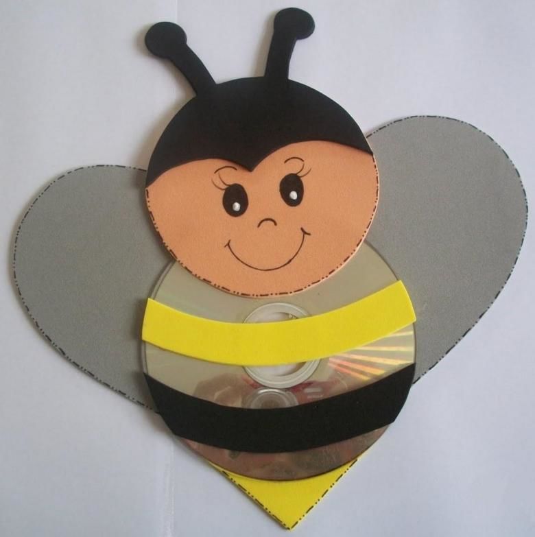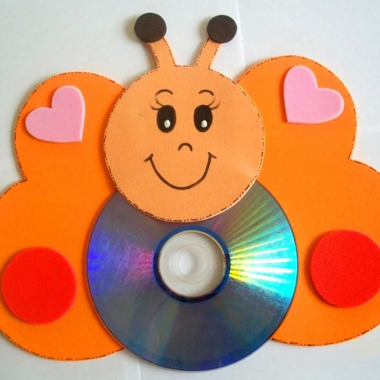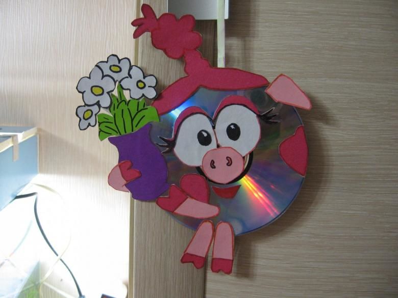 Ако искате да направите героя в желания цвят, можете да боядисате самия диск или с помощта на шаблон да изрежете желаната форма върху цветно парче хартия. Всички елементи на дизайна могат да се фиксират с обикновено лепило.