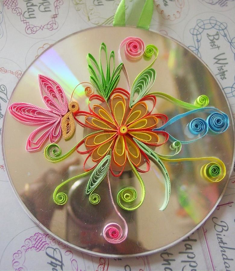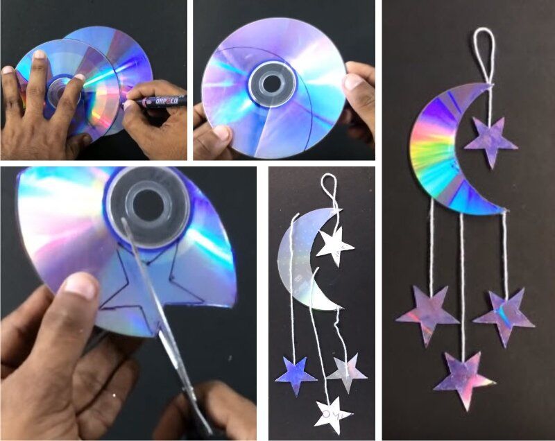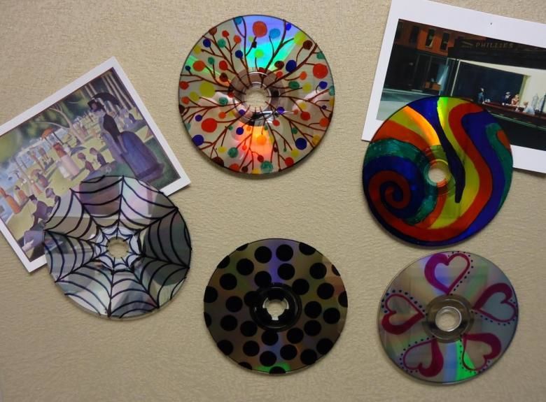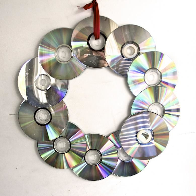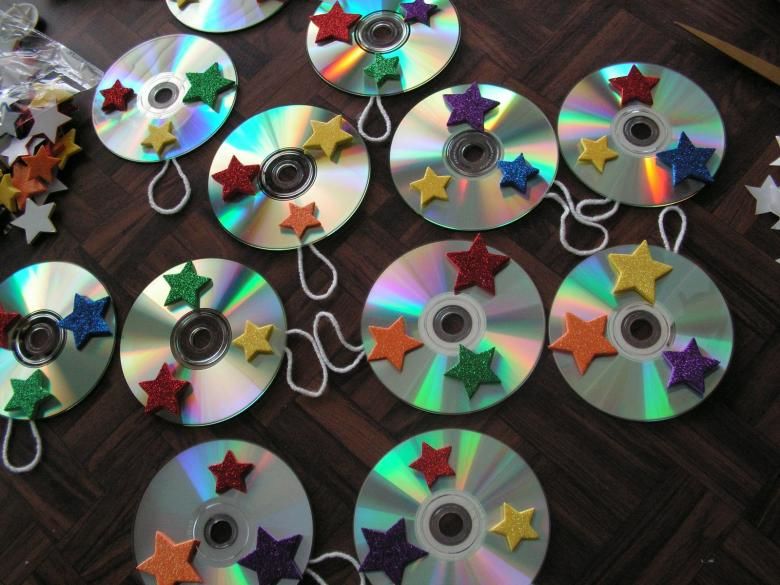 Лесно е да изрежете всякаква форма от диска. Желателно е полученият гирлянд да бъде украсен с нещо. Например нарисувайте нещо или залепете орнамент върху него.