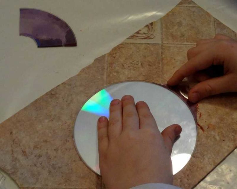 - Разрежете компактдиска на две равни части;