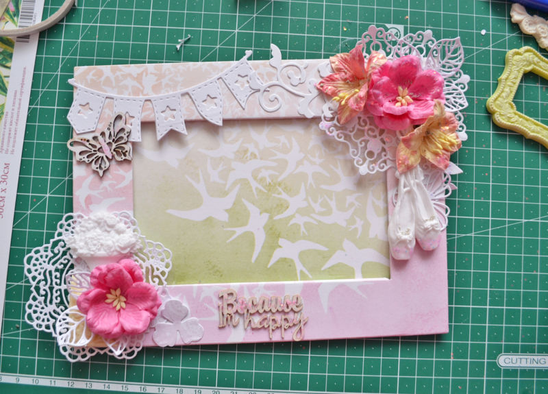 Сплескайте велпапето, огънете парчетата и ги залепете върху рамката. Освен това е чудесен подарък, ако съобразите украсата с вкуса на получателя.