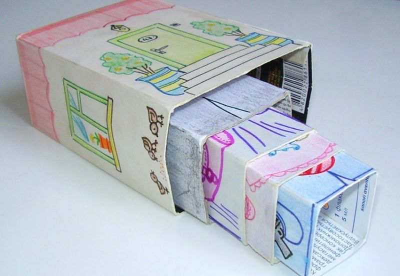 Една от най-разпространените форми на творчество са занаятите с кутийки от мачове. Това е чудесен материал за построяване на робот, крепост, къща - те са направени така, че да приличат на тухли. Освен това кутиите за мачове могат да служат като чекмеджета за по-големи картонени кутии, шкафове.