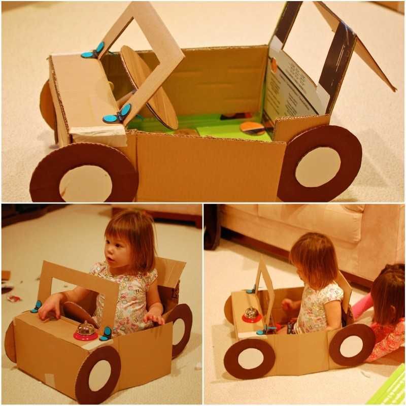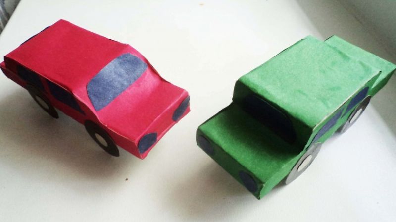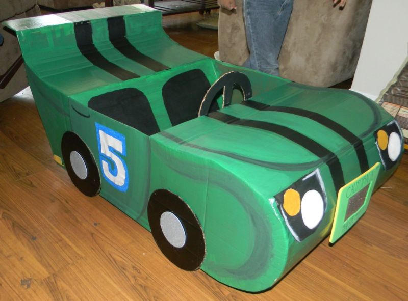 Картонена кола, трактор или състезателен автомобил? Защо не. Струва си да отделите време, за да изрежете профила на автомобила и да го укрепите с лепило или скоби.