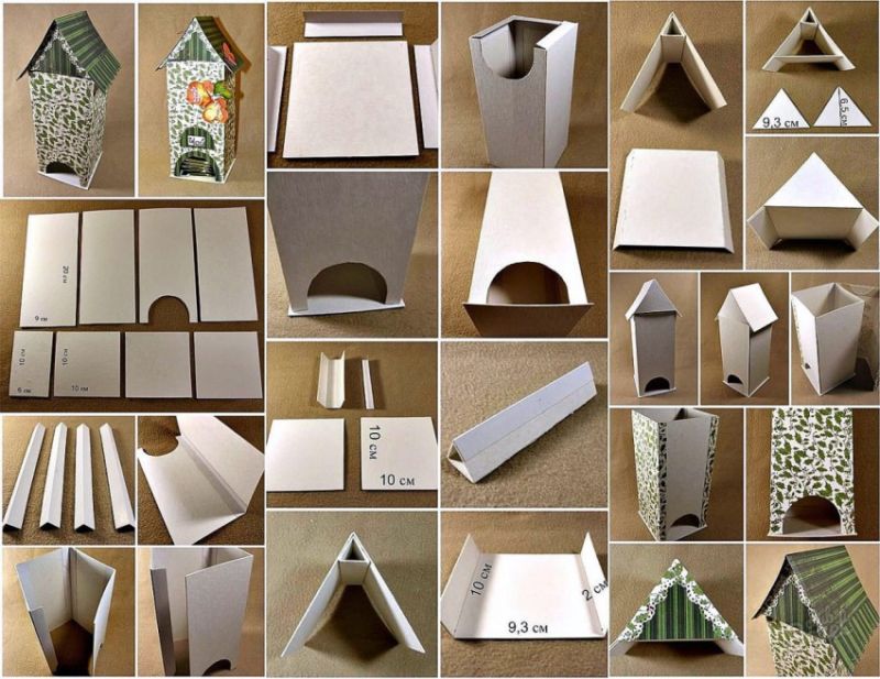 Големите предмети (къщички за домашни любимци, мебели) трябва да бъдат изработени от дебел пресован картон, докато ковчезите или играчките трябва да бъдат изработени от по-гъвкав или тънък картон. Можете също така да подреждате картона на няколко слоя, за да го заздравите.